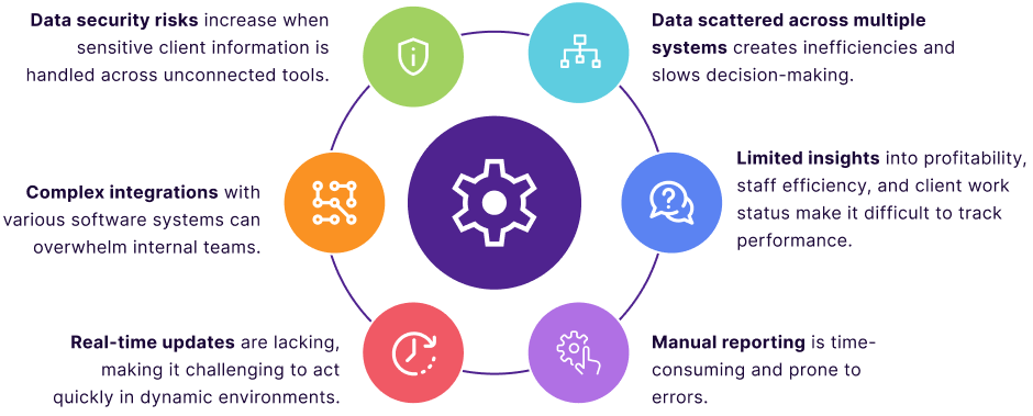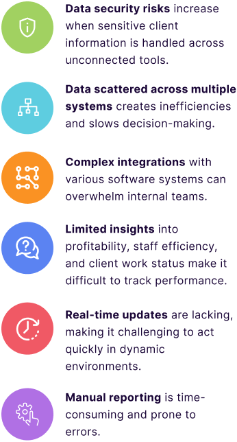Integrate with platforms like HubSpot, Xero, Bright Manager, and CCH for a centralized view of your data.