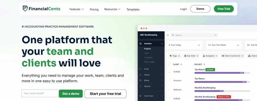 Financial Cents is a practice management platform built specifically for accounting firms. It streamlines workflows, automates repetitive tasks, tracks deadlines, and centralizes client communication.