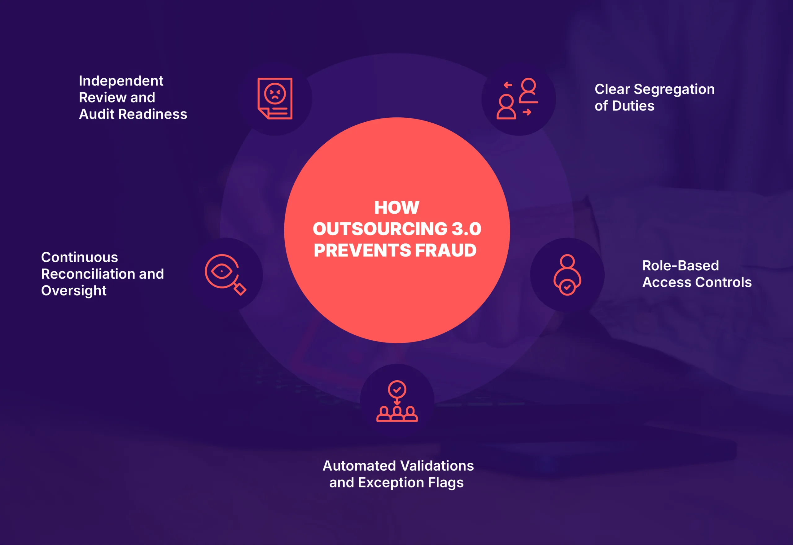 Modern outsourcing addresses these gaps by combining structured workflows, automation, and independent oversight. When implemented correctly, it acts as a preventive control rather than just a processing solution.